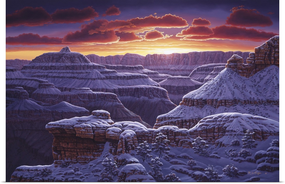 <p>Contemporary landscape painting of the Grand Canyon at sunset in the winter.</p>