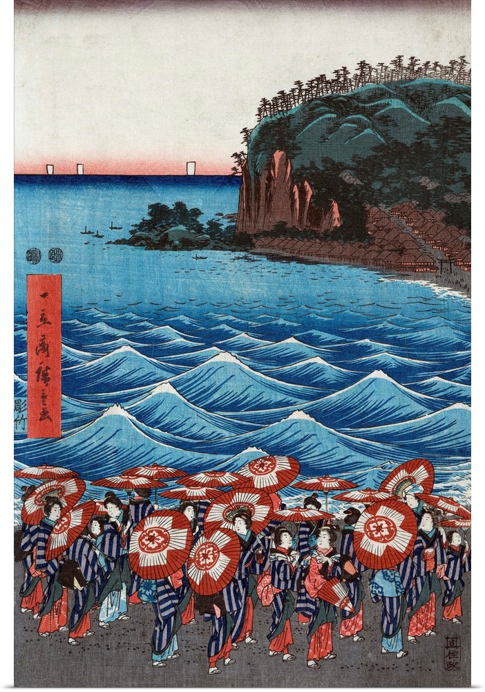 <p>Soshu enoshima benzaiten kaicyo sankei gunshu no zu. Between 1848 and 1854. Left panel of triptych (3 sheets). Woodcut, color ; 36.4 x 76 cm (whole image), 36.4 x 25.4 cm (left panel), 36.4 x 25.3 cm (center panel), 36.3 x 25.3 cm (right panel)</p>