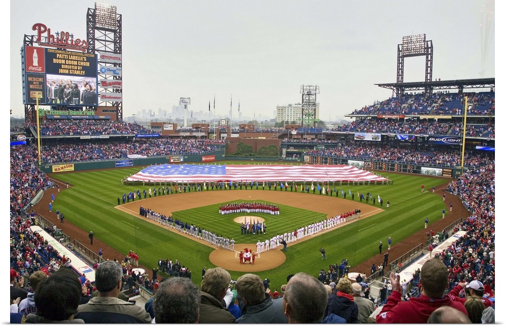<p>Opening Day Ceremonies featuring gigantic American Flag in Centerfield on March 31, 2008, Citizen Bank Park where 44,553 attend as the Washington Nationals defeat the Philadelphia Phillies 11 to 6.</p>