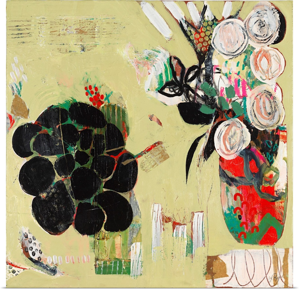 Abstract Art Contemporary Art Florals Green Wall Art Mixed Media Art Painting Lynette Reed