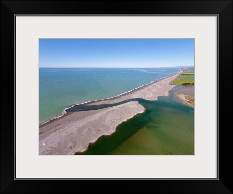<p>Opihi River Mouth, near Temuka, South Canterbury, South Island, New Zealand - drone aerial</p>