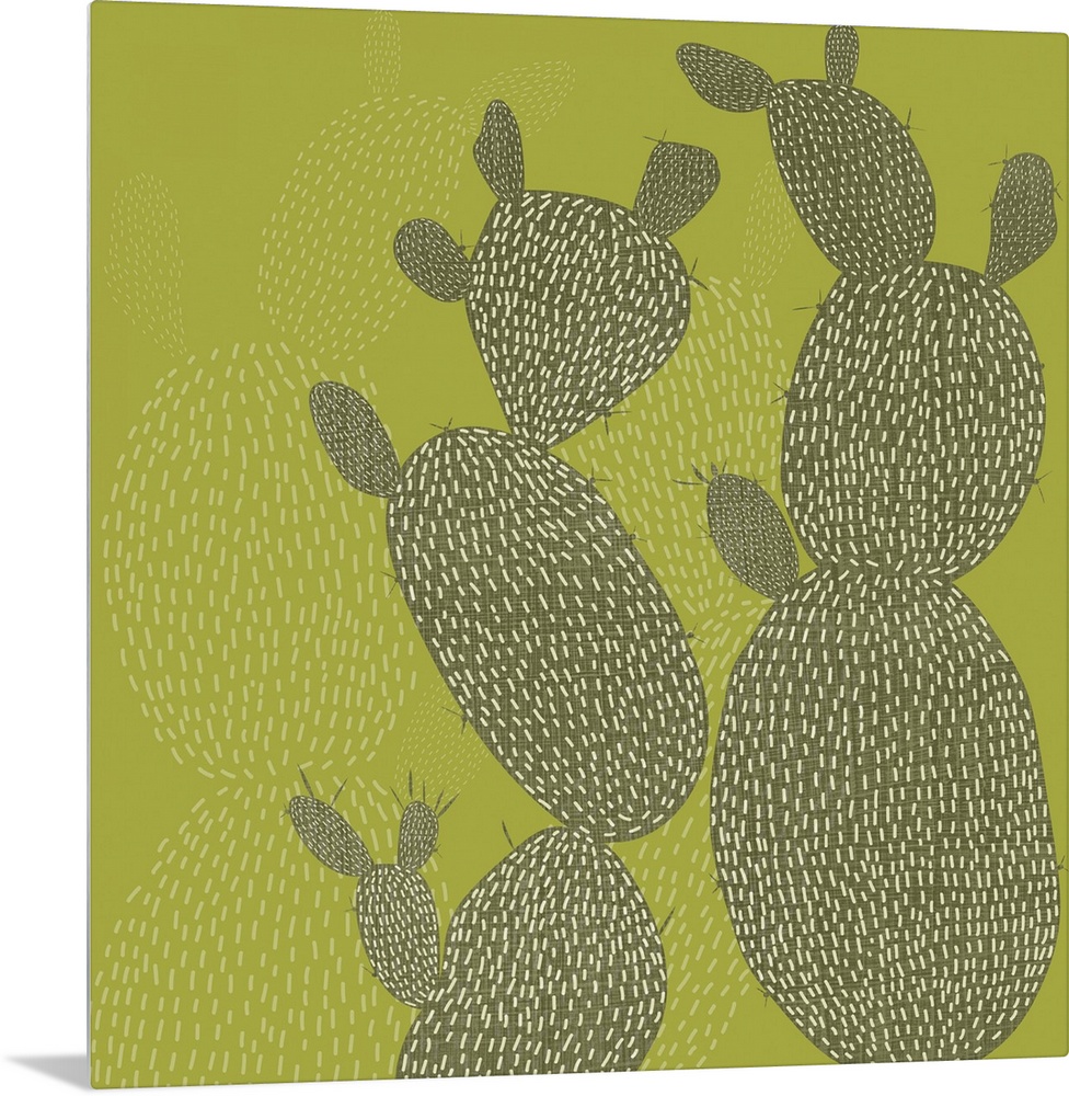 <p>Cactus shapes and designs fill this decorative artwork in light and dark shades of green with a linen texture applied to the dark green.</p>