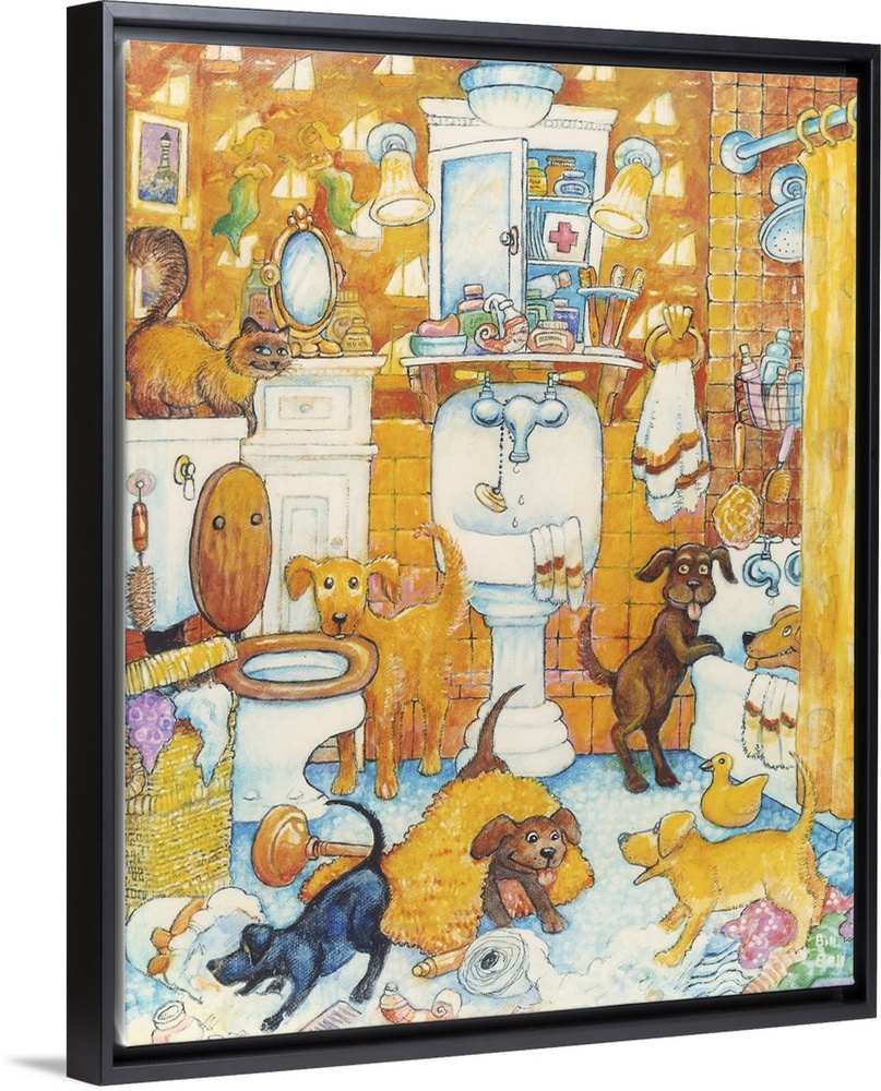 Art Bathroom Art Bill Bell Decorative Art Painting Wildlife Dog Yellow Wall Art