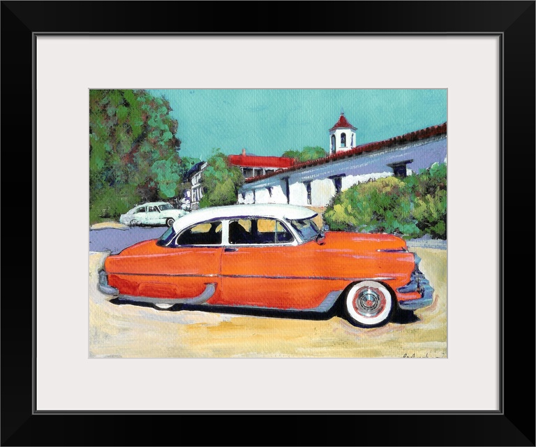 <p>Orange Beast In Old Town San Diego, California, painting by RD RIccoboni. Classic automobile portrait on Mason Street in the park.</p>