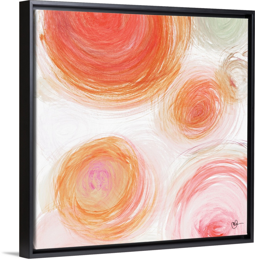 <p>Circular designs in vibrant warm colors fill this contemporary artwork.</p>