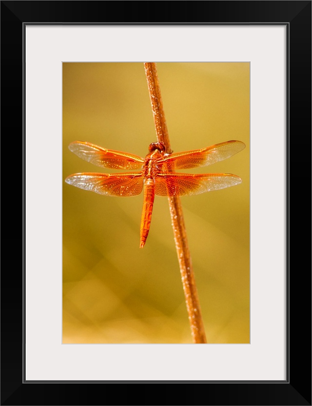 <p>Orange dragonfly, flame skimmer (Libellula saturata) perched on a stick, United States of America</p>