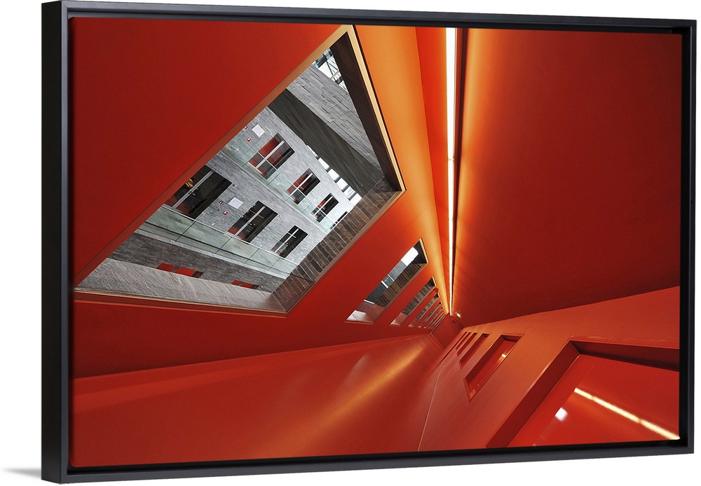 <p>Completely orange corridor in the Netherlands Institute for Sound and Vision.</p>