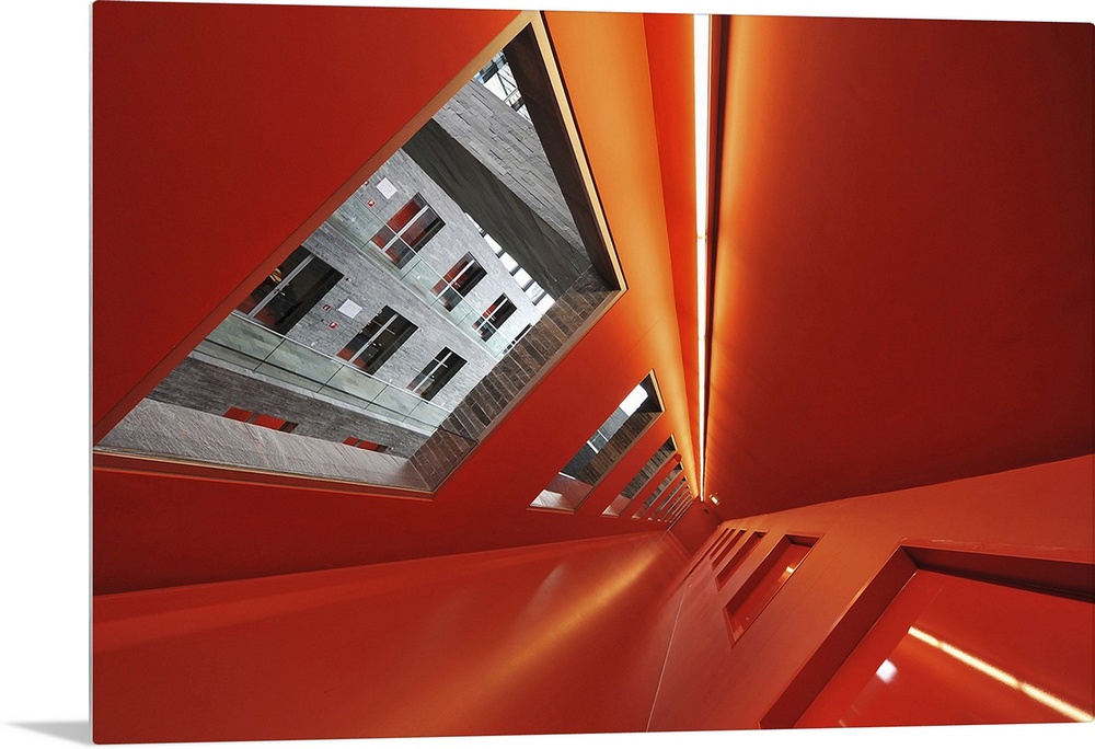 <p>Completely orange corridor in the Netherlands Institute for Sound and Vision.</p>
