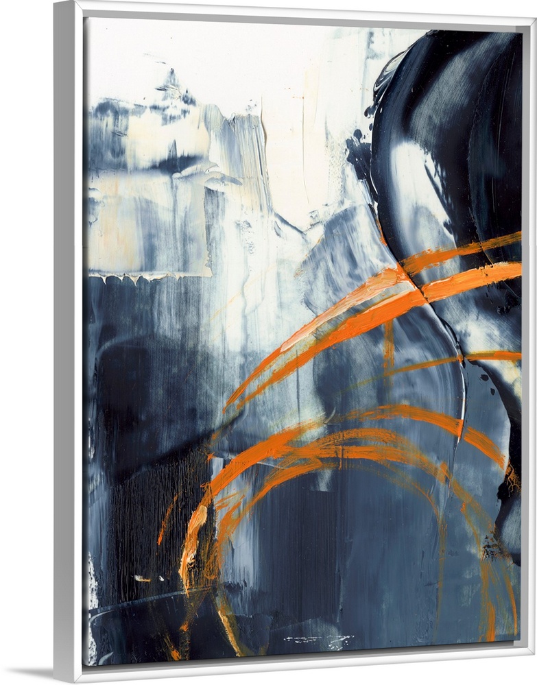 <p>A bold contemporary statement piece in shades of dark indigo accented with streaks of bright orange. It's masculine strength would stand out in a modern docor scheme, perfect for a loft or minimalist setting.</p>