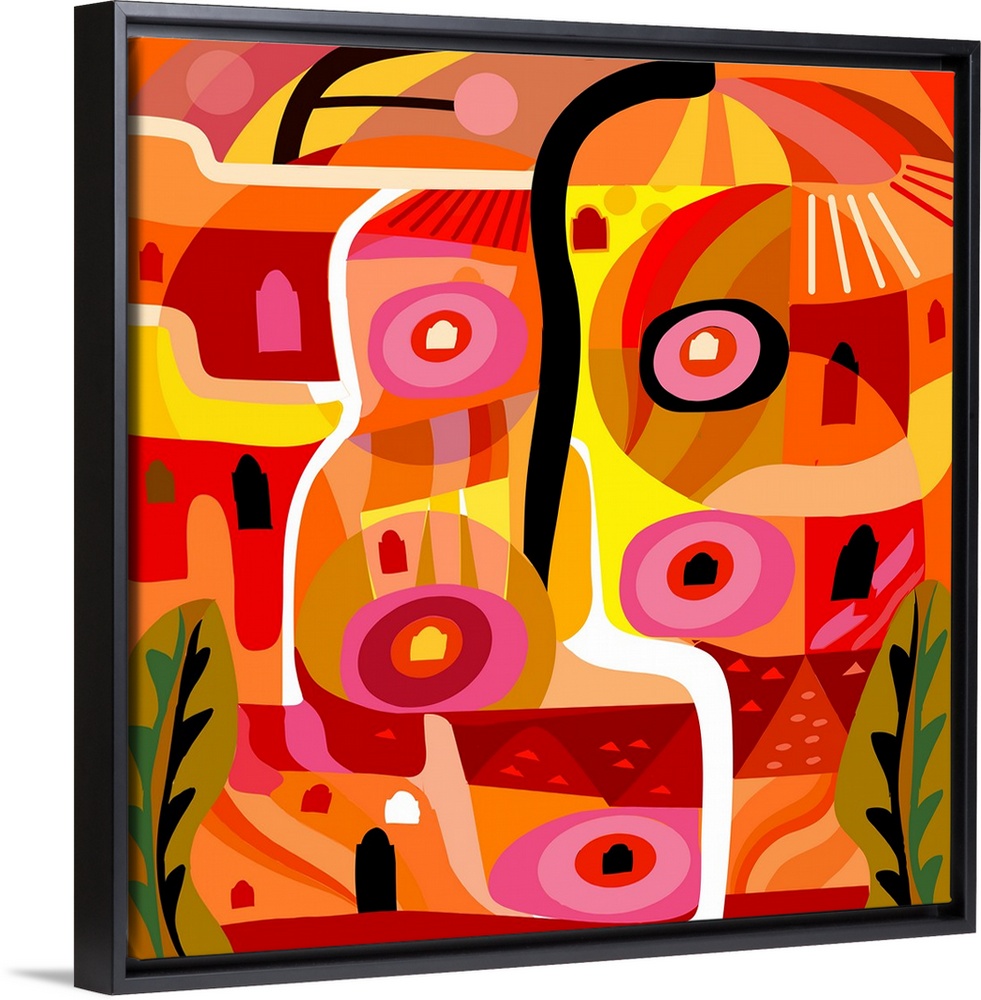 <p>A square digital illustration of various shapes in bright shades of orange and pink.</p>