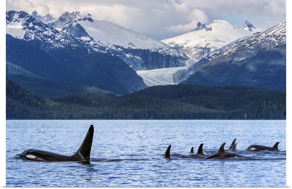 <p>Orca Whale Pod In Lynn Canal With Eagle Glacier And Coast Range, Alaska</p>