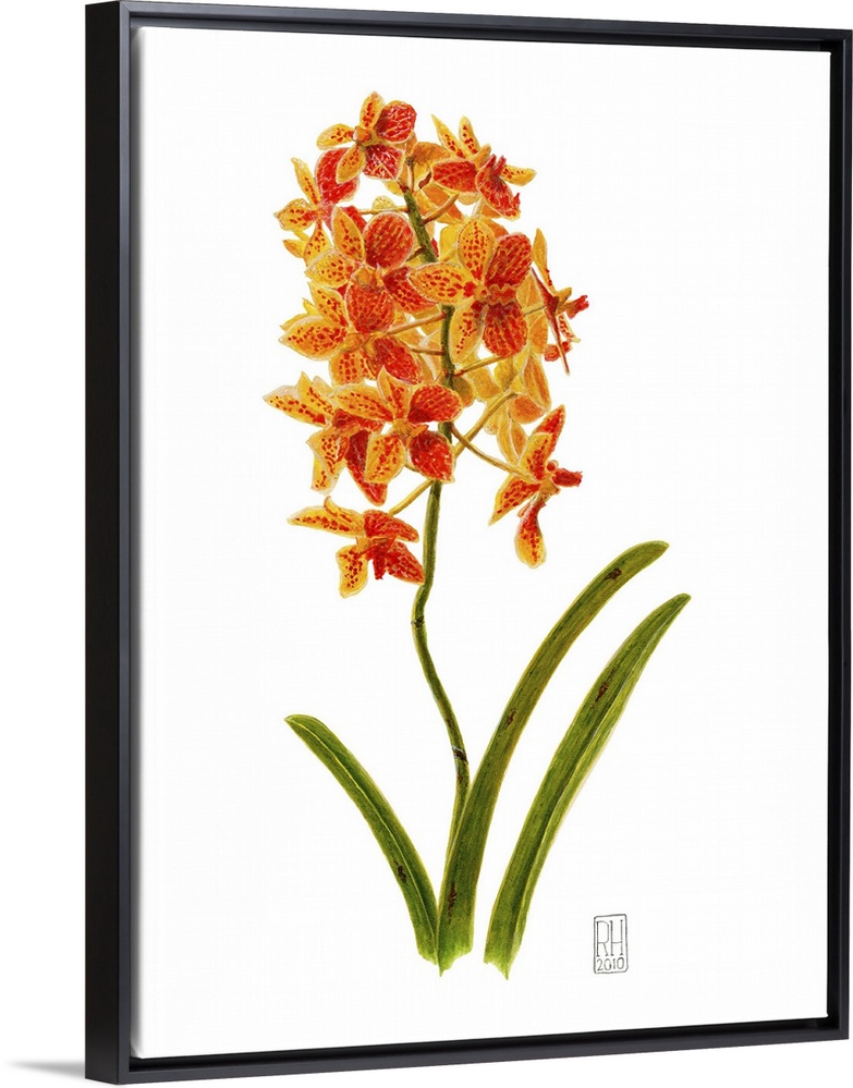 <p>Contemporary artwork of a vibrant orange flower against a white background.</p>