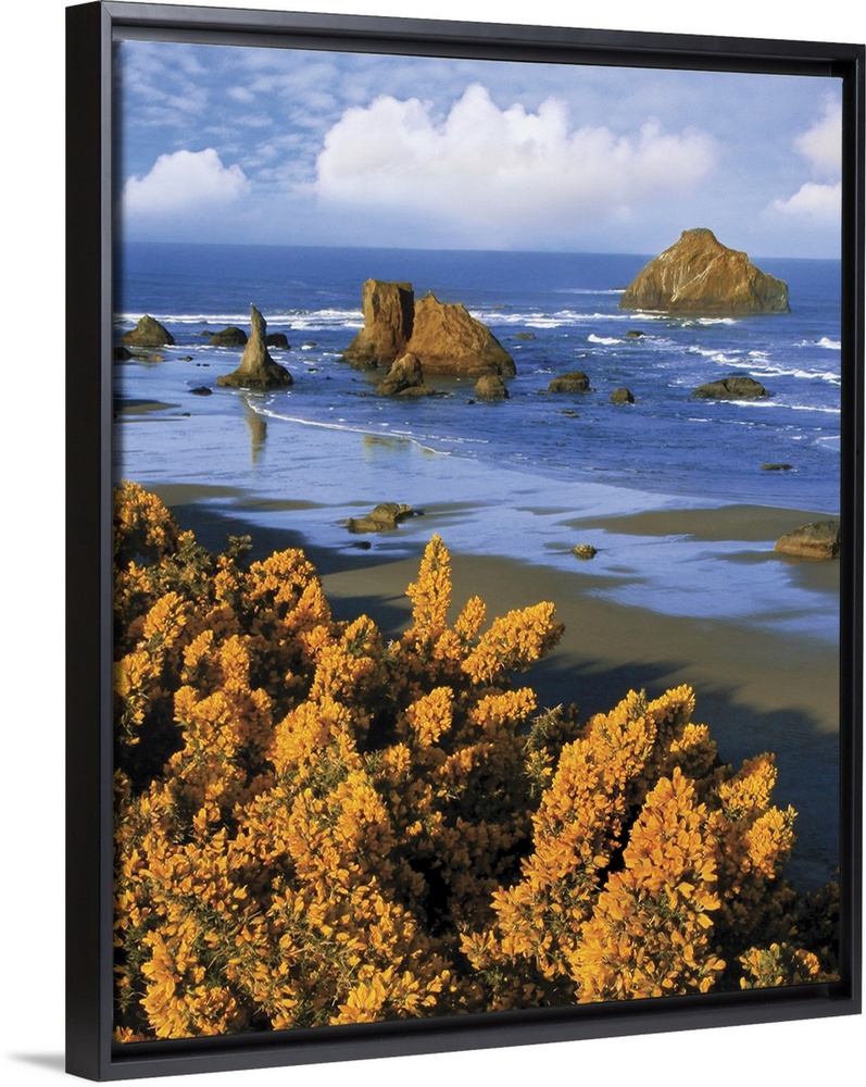 <p>USA, Oregon, Bandon. Face Rock and wild gorse plants.</p>