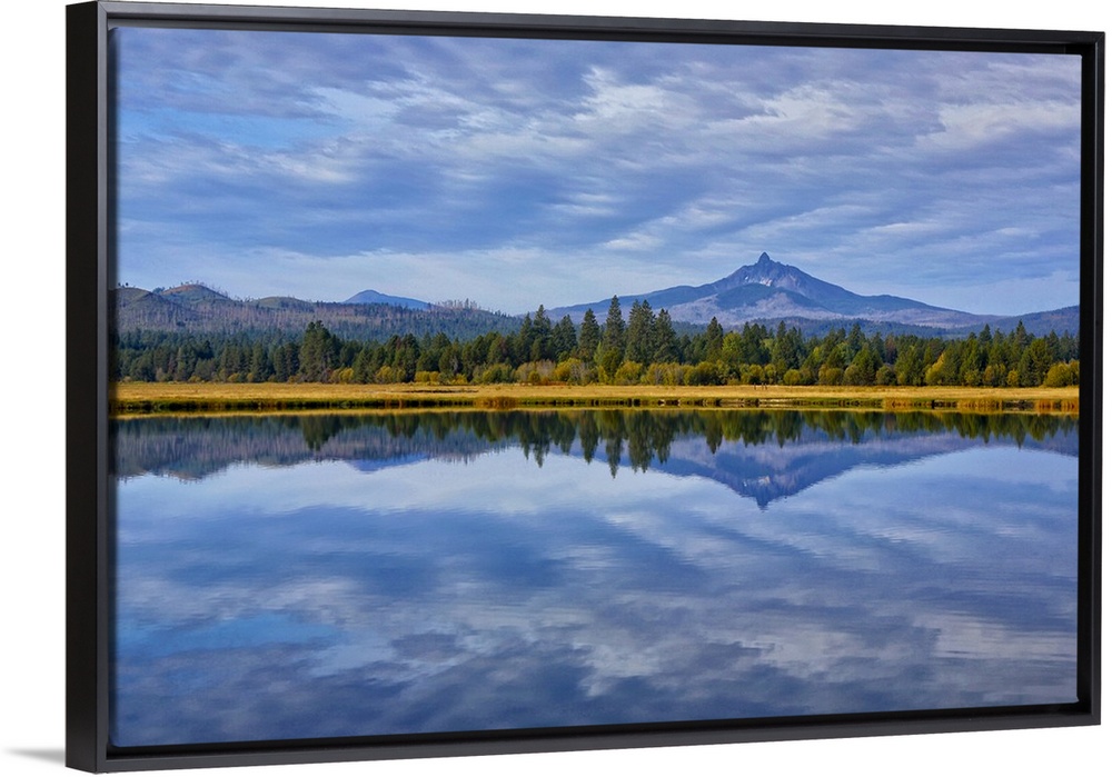 <p>USA, Oregon. Clouds reflect in small lake at Black Butte Ranch.</p>