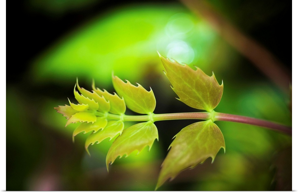 <p>Oregon-grape (Mahonia aquifolium) grows in the forest. Westport, Oregon, United States of America.</p>