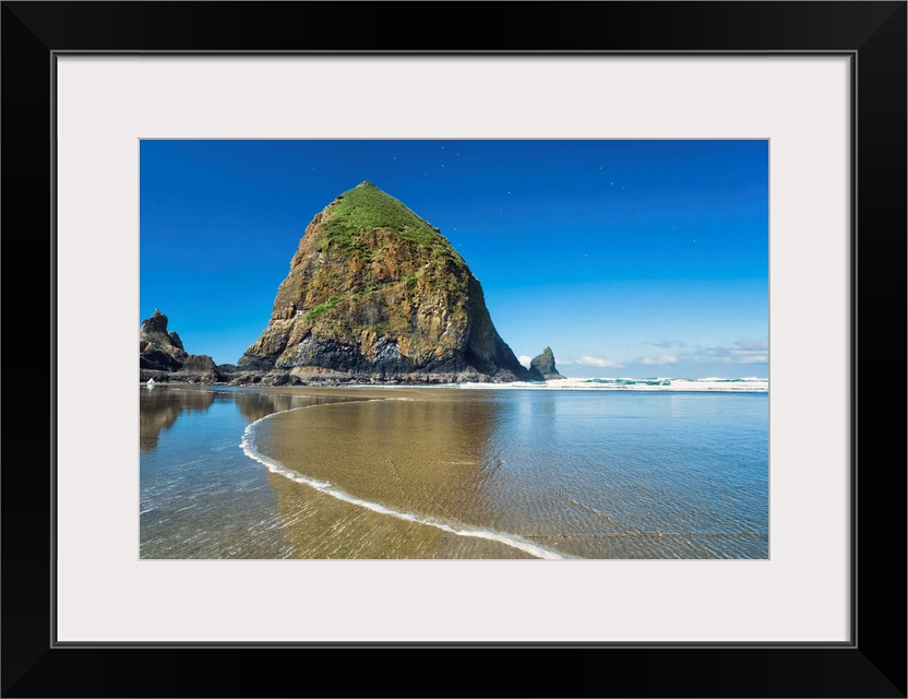 <p>USA, Oregon, Pacific ocean, Hay Stack Rock at low tide, Cannon Beach.</p>