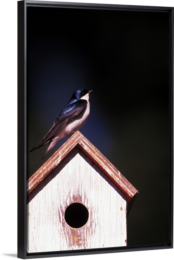 <p>USA, Oregon. Tree swallow (Tachycineta bicolor) at backyard nesting box</p>
