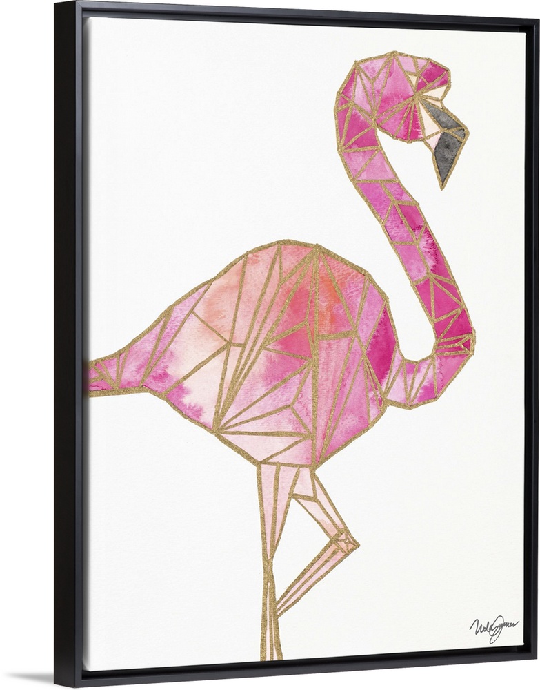 Art College Dorm Décor Decorative Art Geometric Art Nola James Painting Pink Wall Art Wildlife Bird Flamingo