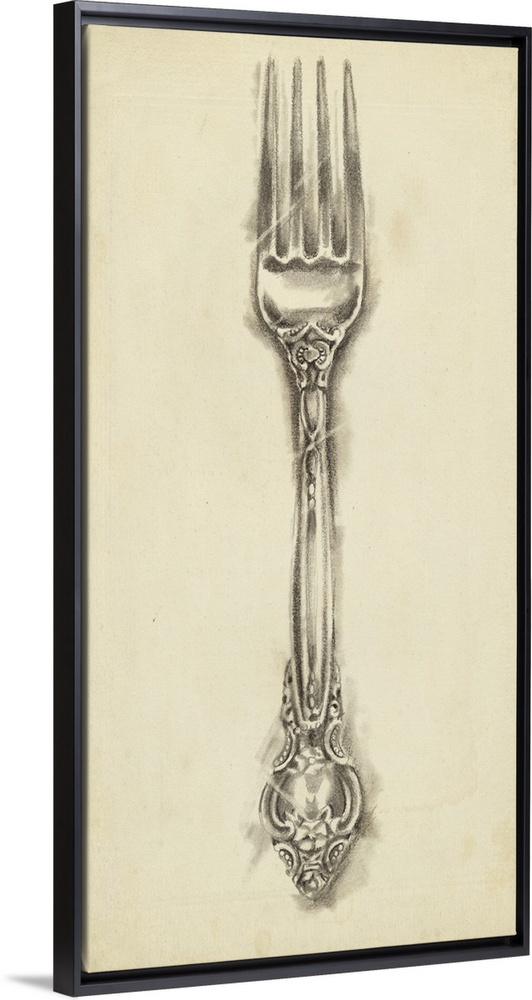 <p>Home decor artwork perfect for any kitchen of an antique silver fork against a beige distressed background.</p>