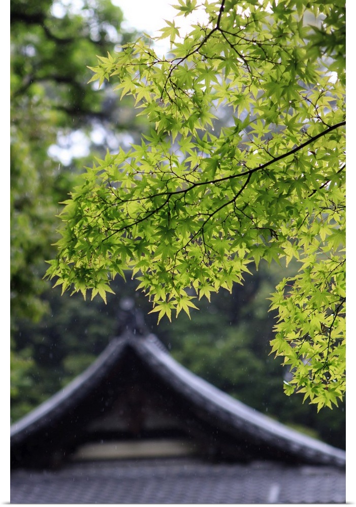 <p>Ornately designed roof and Japanese Maple Leaves at the Golden Temple, Kyoto, Japan.</p>