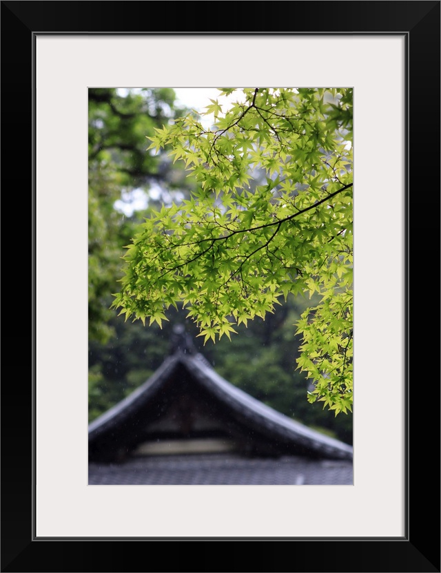 <p>Ornately designed roof and Japanese Maple Leaves at the Golden Temple, Kyoto, Japan.</p>