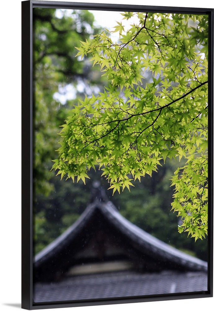 <p>Ornately designed roof and Japanese Maple Leaves at the Golden Temple, Kyoto, Japan.</p>