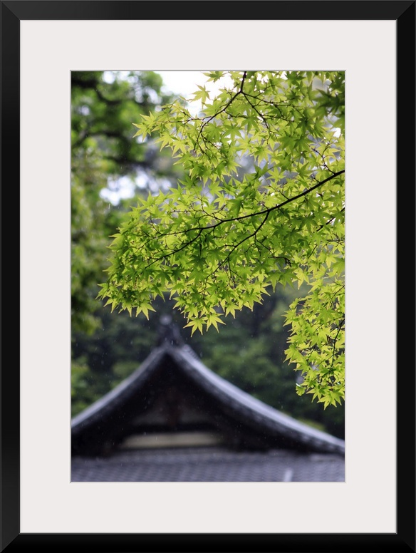 <p>Ornately designed roof and Japanese Maple Leaves at the Golden Temple, Kyoto, Japan.</p>
