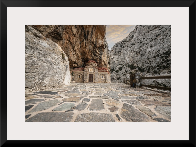 <p>Orthodox chapel Agios Nikolaos nestled in rocks in Kotsifou canyon, Crete island, Greek Islands, Greece, Europe</p>