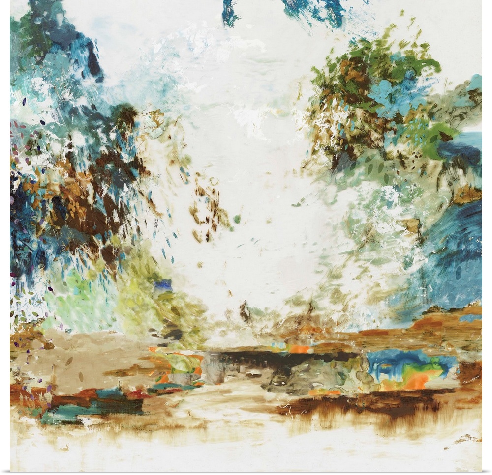 <p>Square contemporary painting of a landscape in natural earth tone colors.</p>