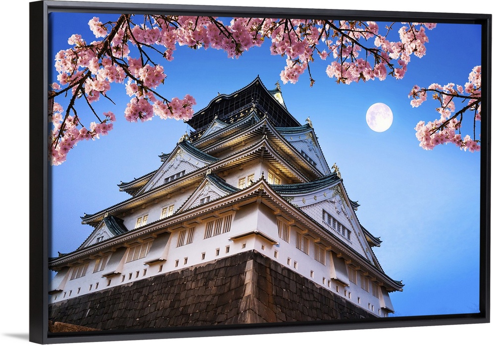 <p>Osaka Castle With Cherry Blossoms And Moon, Japan</p>
