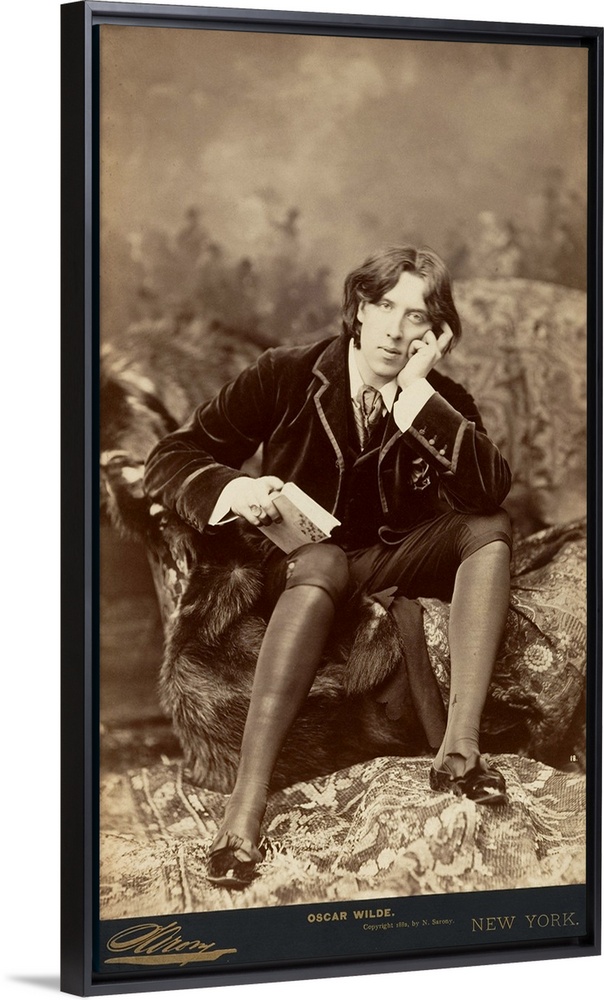 <p>Napoleon Sarony, an acknowledged master of celebrity photographs, succeeded Mathew Brady as the best-known portrait photographer in New York. Opening his first studio on Broadway in 1866 and moving to more elaborate premises on Union Square in 1871, Sarony took full advantage of the growing fascination with the theater that swept America in the aftermath of the Civil War. His inexpensive cartes de visite and more upscale cabinet cards, produced in the thousands, satisfied both the need of actors for publicity and the public's mania for collecting their images. When this photograph was taken in January 1882, Oscar Wilde had not yet written The Picture of Dorian Gray (1891) and the plays that would make him famous in the next decade. Twenty-seven years old, he had to his credit only an unproduced melodrama, Vera, and a controversial book of verse. He had, however, created a position for himself in London society as a wit and a dandy, promoting the cause of the English aesthetic movement through his dazzling conversation. Wilde went to America in 1882 at the invitation of the New York producer Richard D'Oyly Carte to give a series of lectures on the English Renaissance to promote the opening of D'Oyly Carte's production of the Gilbert and Sullivan operetta Patience, in which aestheticism and Wilde himself were brilliantly satirized. Posing as the ultimate aesthete, or, rather, a caricature of one, Wilde was warmly received and enjoyed tremendous social success. To mock with his appearance the seriousness of the very ideals he was championing was, of course, characteristic of Wilde's fondness for paradox. Wilde appeared in Sarony's studio dressed in the attire he would wear at his lectures: a jacket and vest of velvet, silk knee breeches and stockings, and slippers adorned with grosgrain bows--the costume he wore as a member of the Apollo Lodge, a Freemason society at Oxford. Sarony took many photographs of Wilde, in a variety of poses. Here, his features not yet bloated by self-indulgence and high living, Wilde leans toward the viewer as though engaging him in dialogue, the appearance and calculated pose of the dandy secondary to the intelligence and spontaneous charm of the conversationalist.</p>