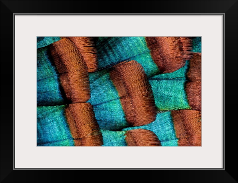 <p>Oscellated Tujrkey feather pattern blues and golden tans and photographed in Sammamish, Wa.</p>