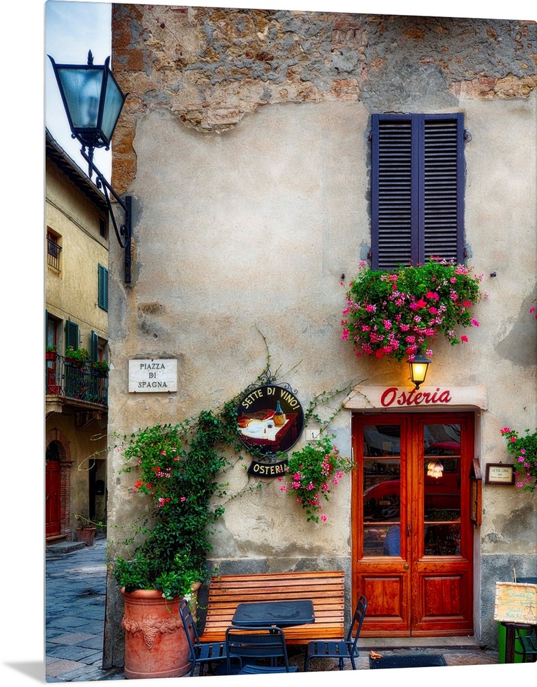 <p>A photograph of the outside of a restaurant in Italy.</p>
