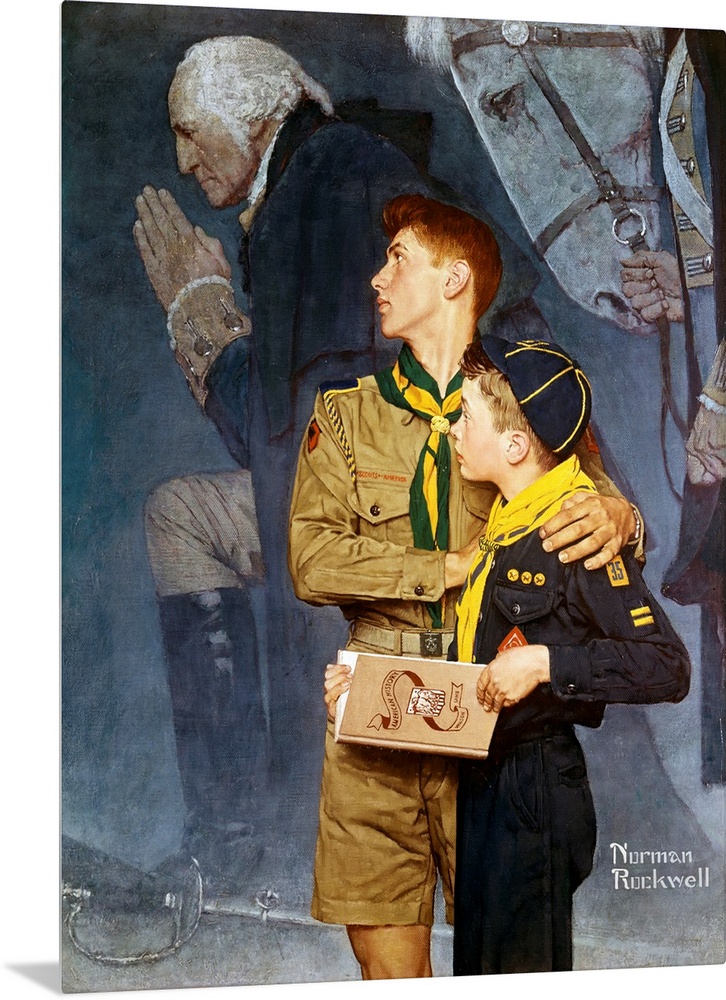 <p>Norman Rockwell's long artistic relationship with the Boy Scouts of America began after he successfully illustrated the Boy Scout Hikebook in the fall of 1912 and lasted until 1976 with Rockwell producing their annual calendar illustrations. Many of the images depict the Scouts learning, teaching, or doing outdoor activities. Approved by the Norman Rockwell Family Agency</p>