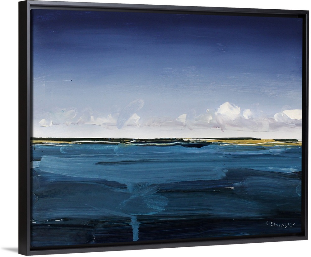 <p>Contemporary painting of a view starring out at the sea from a beach.</p>