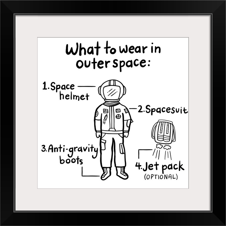 <p>Illustration of what to wear in outer space on a white background.</p>