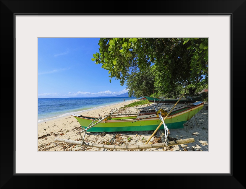 <p>Outrigger canoes on Pulisan beach with Tangkoko mountain and national park beyond, Pulisan, Minahasa Highlands, North Sulawesi, Indonesia, Southeast Asia, Asia</p>