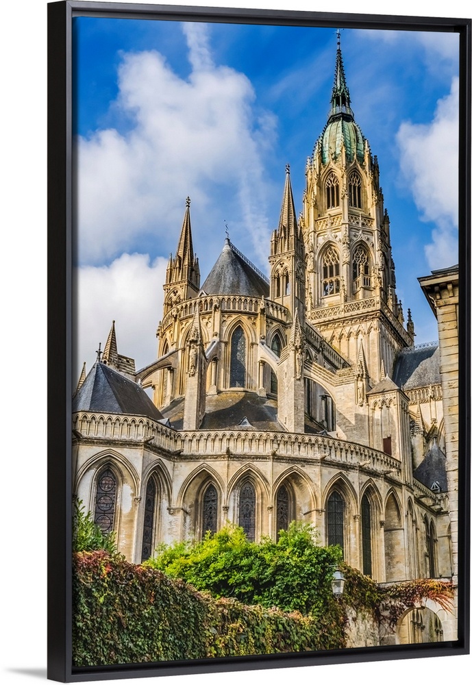 <p>Outside, Bayeux Cathedral, Bayeux, Normandy, France. Catholic church consecrated by King William the Conqueror in 1077.</p>