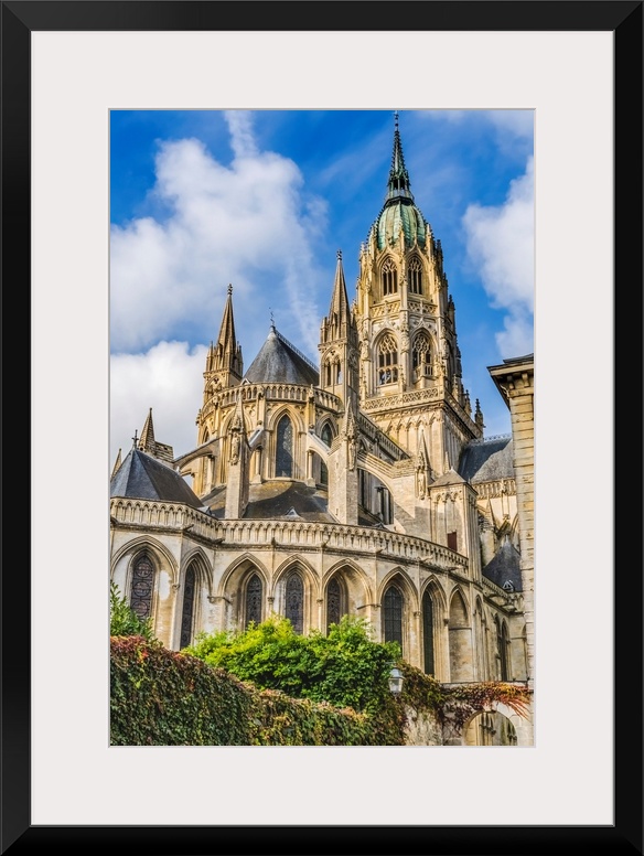 <p>Outside, Bayeux Cathedral, Bayeux, Normandy, France. Catholic church consecrated by King William the Conqueror in 1077.</p>