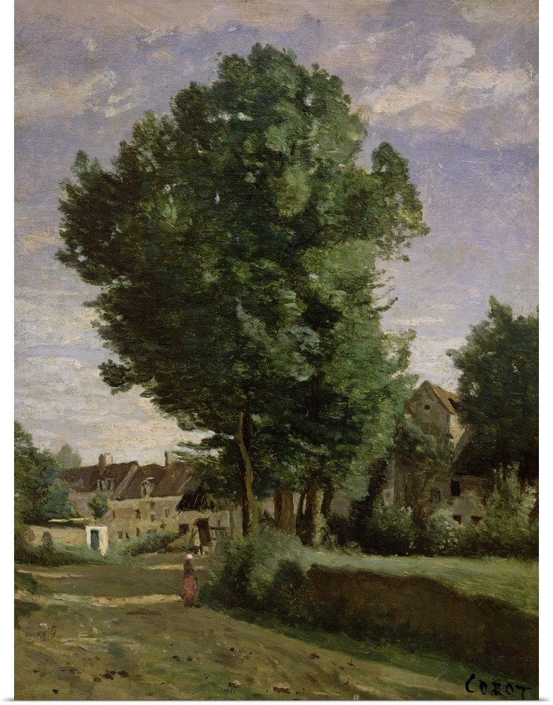 <p>XIR71561 Outskirts of a village near Beauvais, c.1850 (oil on canvas) by Corot, Jean Baptiste Camille (1796-1875); 40x30 cm; Louvre, Paris, France; (add. info.: Entree de Village, Environs de Beauvais du Cote de Voisinlieu); French, out of copyright</p>