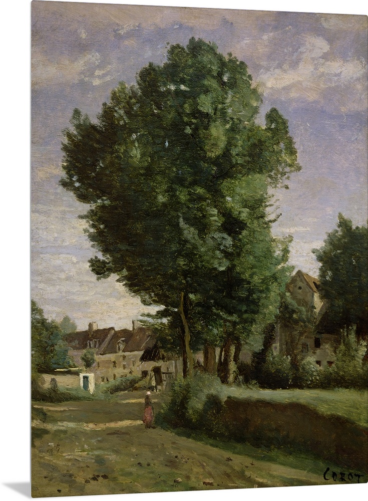 <p>XIR71561 Outskirts of a village near Beauvais, c.1850 (oil on canvas) by Corot, Jean Baptiste Camille (1796-1875); 40x30 cm; Louvre, Paris, France; (add. info.: Entree de Village, Environs de Beauvais du Cote de Voisinlieu); French, out of copyright</p>