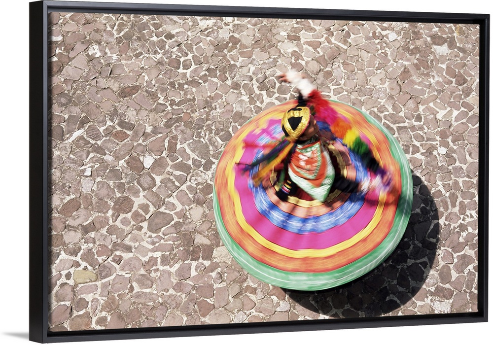 <p>Overhead view of a Mestiza Cuzquena dancer in motion, Cuzco (Cusco), Peru, South America</p>