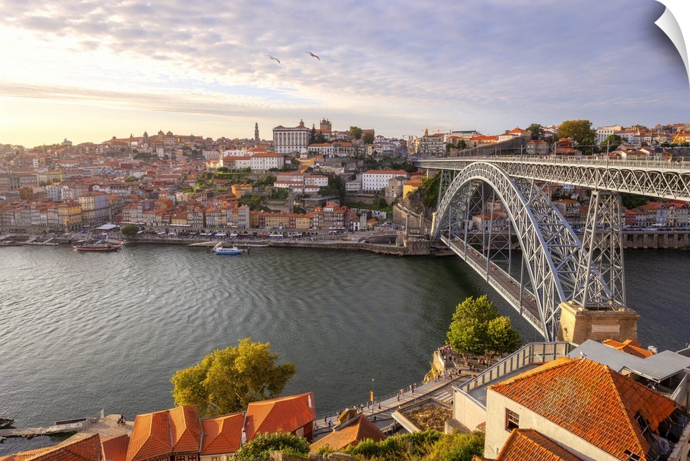 <p>Overview of Porto old town and Dom Luis I Bridge, Vila Nova de Gaia, Porto, Portugal</p>