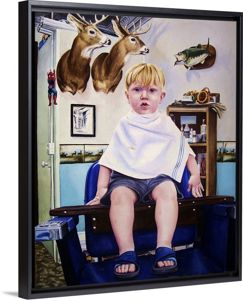 <p>A contemporary portrait of a young boy in a barber shop, getting ready to get his hair cut.</p>