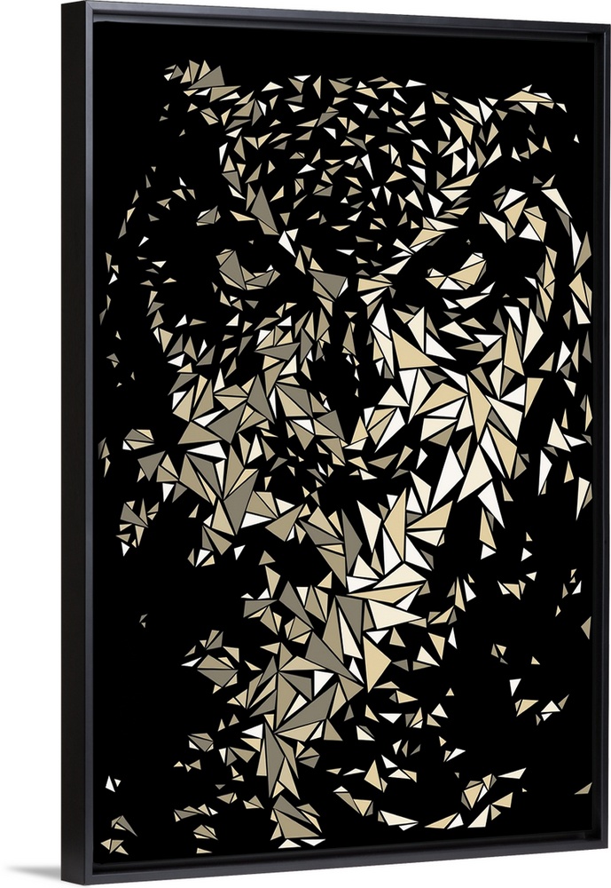 <p>Portrait of an owl made up of triangular geometric shapes.</p>