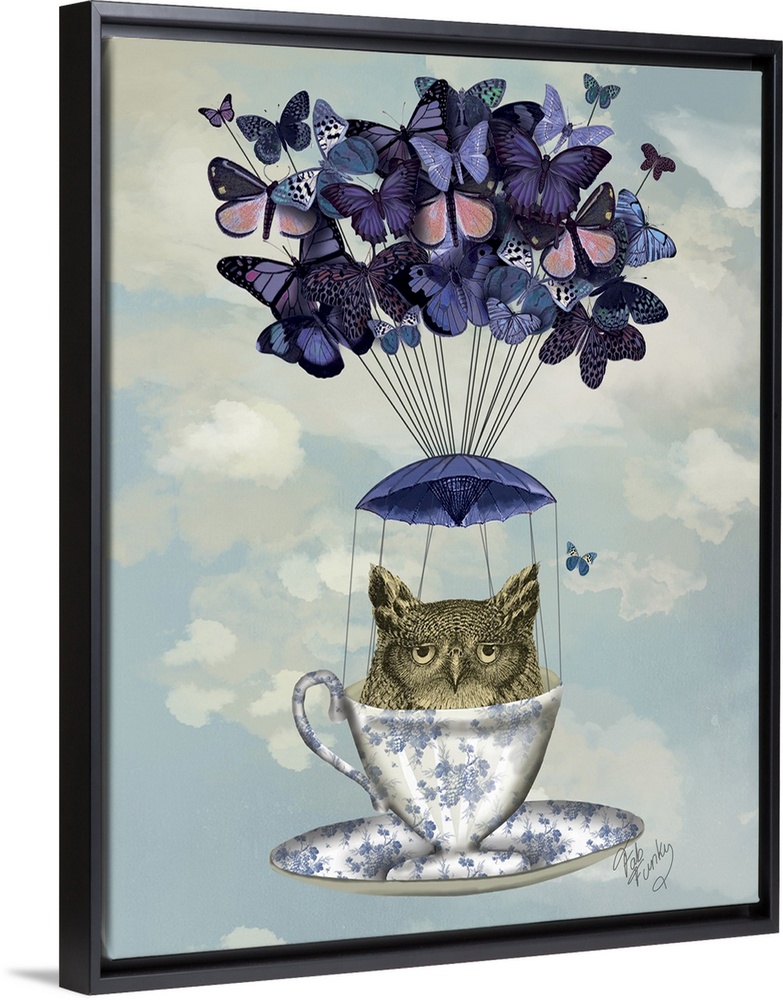 Art Blue Wall Art Decorative Art Fab Funky Graphic Art Painting Surrealism Wildlife Bird Owl Insect and Arachnid Butterfly