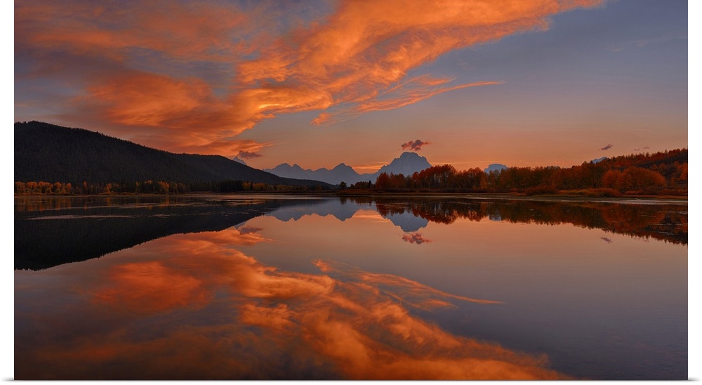 <p>Oxbow Bend of Snake River with Mt. Moran in Autumn at Sunset, Grand Teton National Park, Wyoming</p>