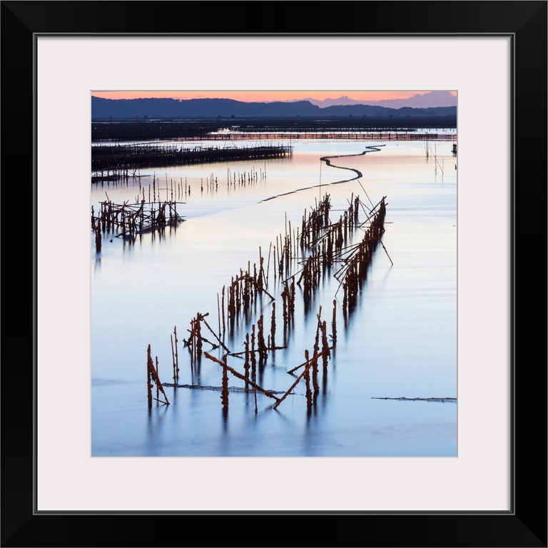 <p>Oyster beds at sunset, Halong Bay, Quang Ninh Province, North-East Vietnam, South-East Asia</p>