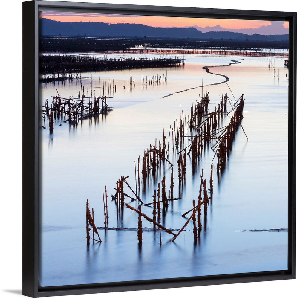 <p>Oyster beds at sunset, Halong Bay, Quang Ninh Province, North-East Vietnam, South-East Asia</p>