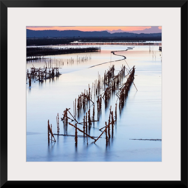 <p>Oyster beds at sunset, Halong Bay, Quang Ninh Province, North-East Vietnam, South-East Asia</p>